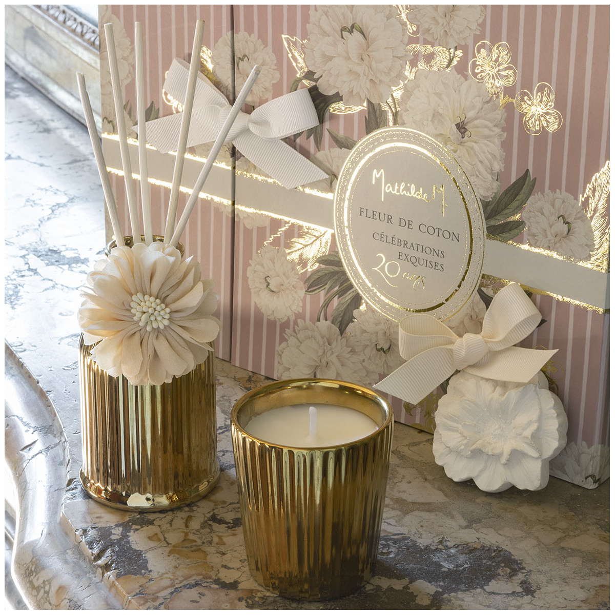 Grâce à sa collection anniversaire Célébrations Exquises, Mathilde M célèbre avec raffinement 20 ans de créations et de savoir-faire en parfum. Le temps d’une Édition Limitée, le Studio de Création réinterprète les codes historiques de la marque et remet en lumière 4 parfums emblématiques : Marquise, Fleur de Coton, Rose Élixir et Figuier Dolce. Pour que l’Art du Parfum soit toujours une exquise fête…